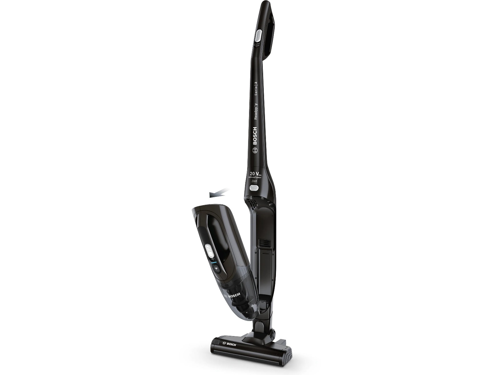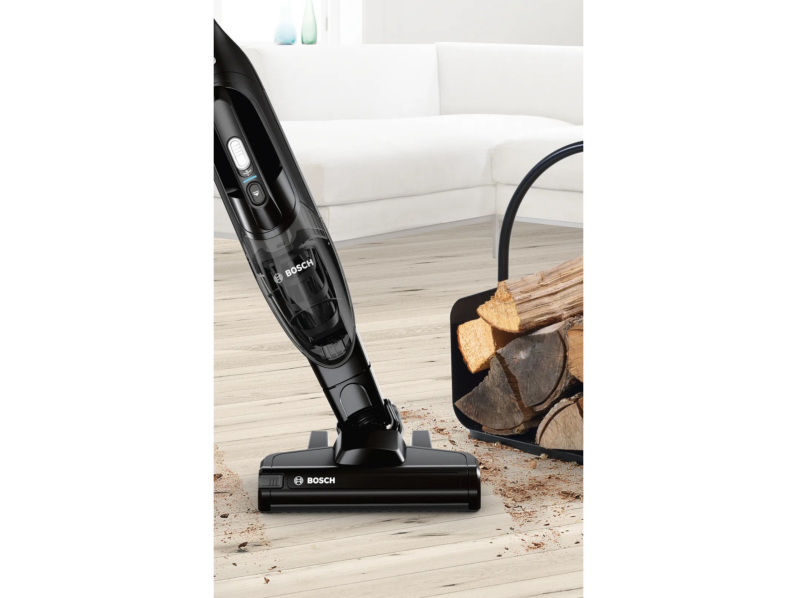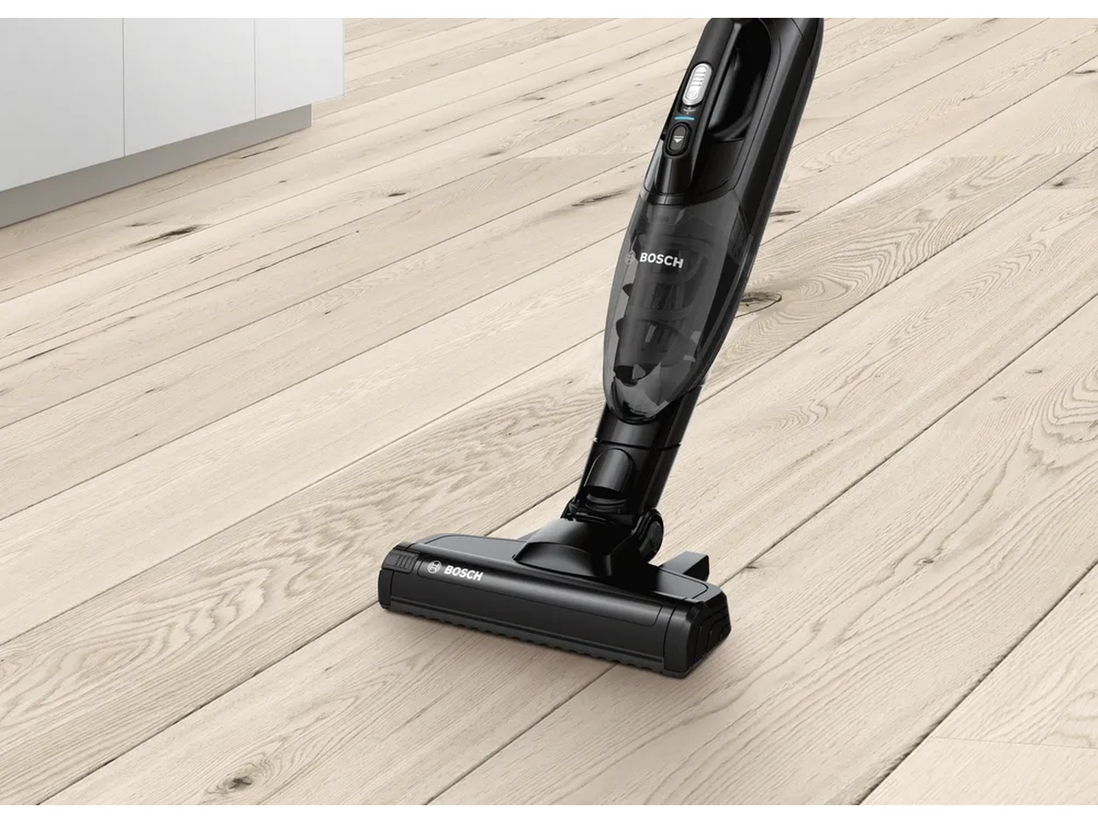 Støvsugeren kan enkelt brukes uten tilbehør. Den håndholdte delen er enkelt å håndtere, med en ergonomisk plassert strømbryter og enkel balanse. Støvsugeren er også egnet til rask rengjøring av bord, stoler og sofaer eller for å støvsuge vanskelig tilgjengelige områder som skuffer og under møbler. Støvbeholderen og filteret er enkle å tømme og skifte ut.