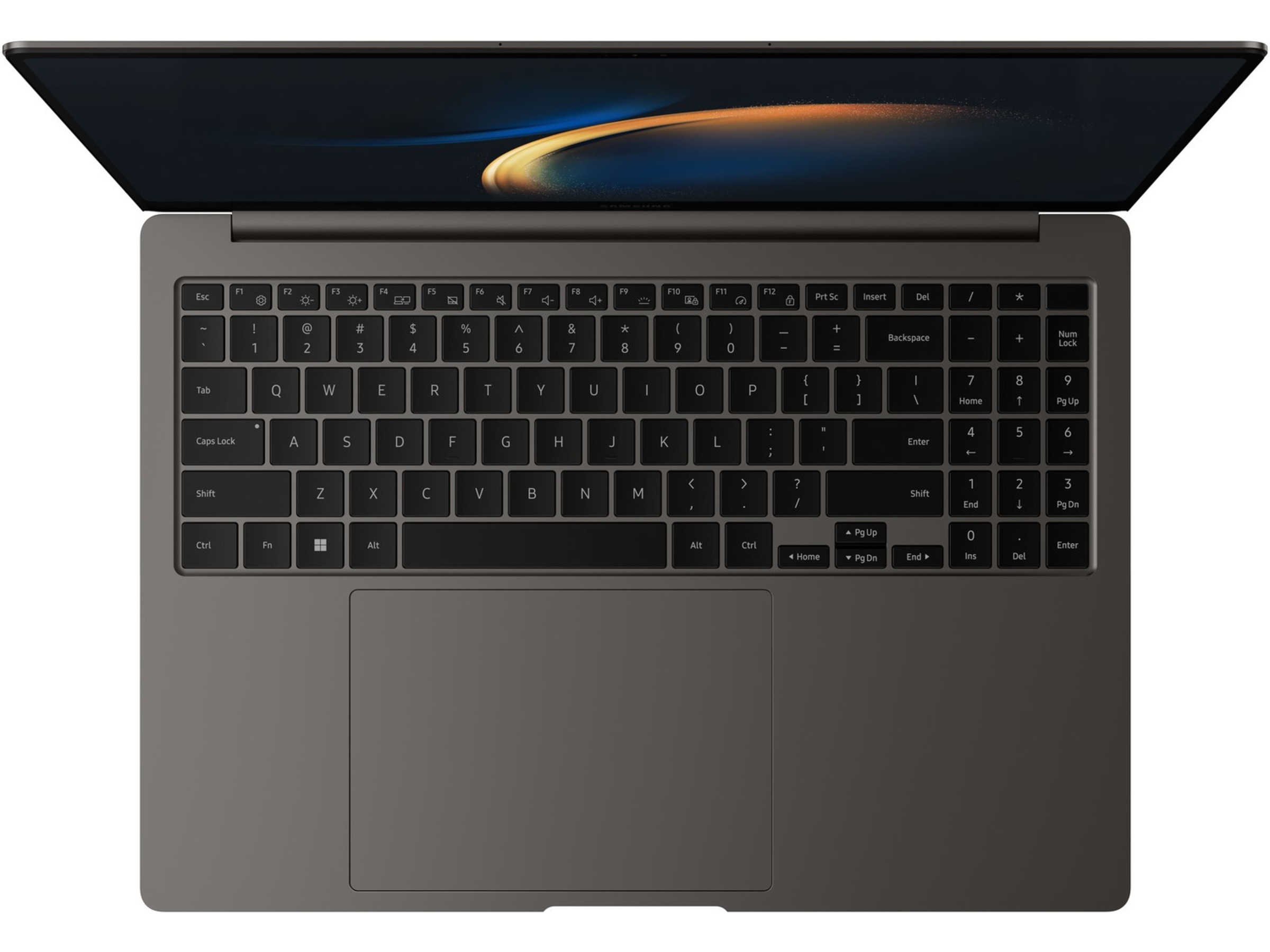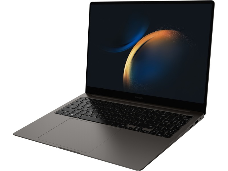 Galaxy Book3 Ultra er med sine elegante mål på 16,5 mm og 1,79 kg svært enkel å ha med seg. Den er også stilig i Grafittgrå!