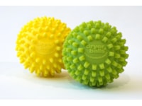 En gjenbrukbar, trygg, giftfri og miljøvennlig måte å mykne tøyet ditt på uten å bruke kjemikalier eller tøymykner. Bruk av tøymykner og tørketrommelark kan forårsake uønskede allergier. De grønne og gule "Tumble Dryer Balls" mykner stoffene på en naturlig måte. Og de sparer deg penger fordi de reduserer tørketiden. Legg begge ballene i tørketrommelen på vanlig innstilling. I tillegg til å beholde varmen, løfter ballene vaskingen og øker luftsirkulasjonen i maskinen. De spesielt designede nodene bryter fysisk ned hardhet i stoffer som oppstår av vann under tørking, og etterlater klærne dine vakkert myke. Disse smarte tørketrommelballene reduserer til og med mengden lo (avfallspels) samt skrukker og rynker - og sparer deg tid ved strykebrettet! Og de er også antistatiske. Dette fantastiske miljøvennlige alternativet til tøymykner og tørketrommelark er gjenbrukbart, så du trenger aldri å bekymre deg for å mykne vasken din igjen.
