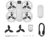 Pakkeinnhold Fly, Intelligent flybatteri, USB-C PD-kabel, 4 propellskruer, Slingrebøylevern, 2 ekstra propeller, Skrutrekker, Propellvern (par)