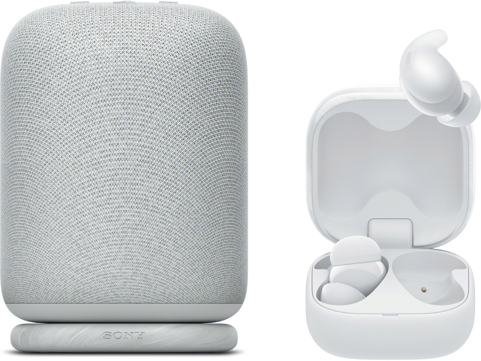 LinkBuds Speaker har en stilig dockingstasjon for hurtiglading og en avtakbar stropp som gjør det enkelt å bære eller henge den opp. Den leverer klar og detaljert lyd, perfekt for musikk, lydbøker eller podcaster.