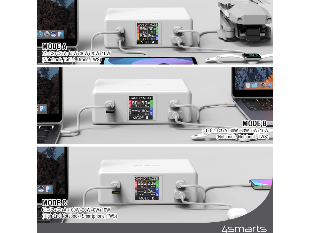 4smarts 130W GaN DIY MODE ladestasjon (hvit)