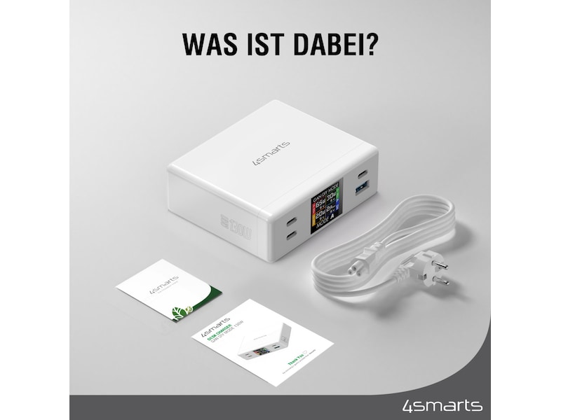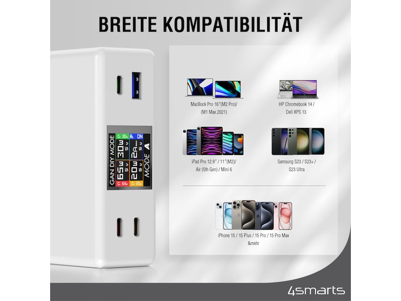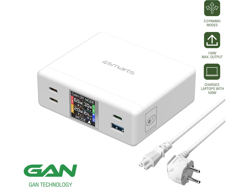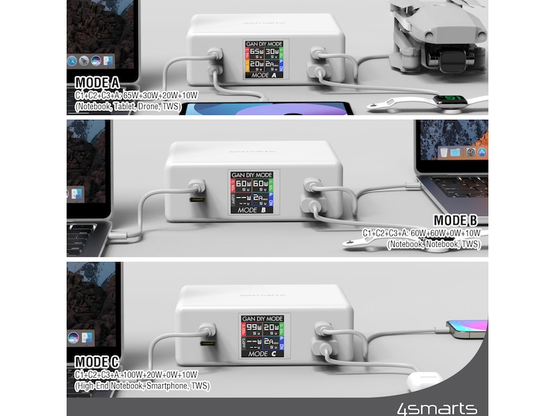 - Flere tilkoblinger: Samtidig lading via 3x USB-C og 1x USB-A-port