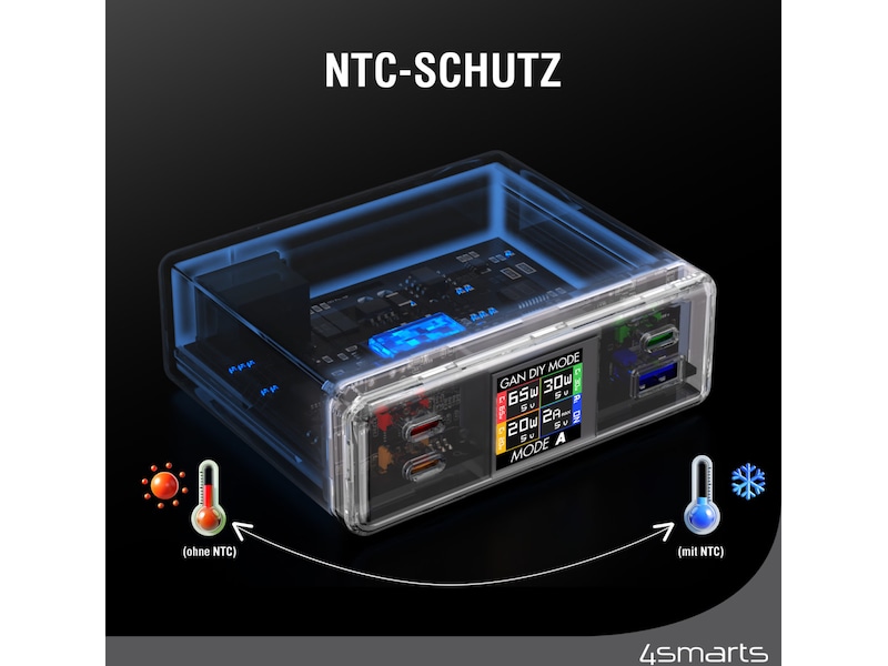 Med den integrerte NTC-temperaturkontrollen kan du lade enhetene dine trygt og effektivt. Denne intelligente teknologien beskytter mot overoppheting og garanterer optimal ladeytelse. Dra nytte av maksimal ytelse og forleng levetiden til enhetene dine - det er smart lading, utviklet spesielt for deg.
