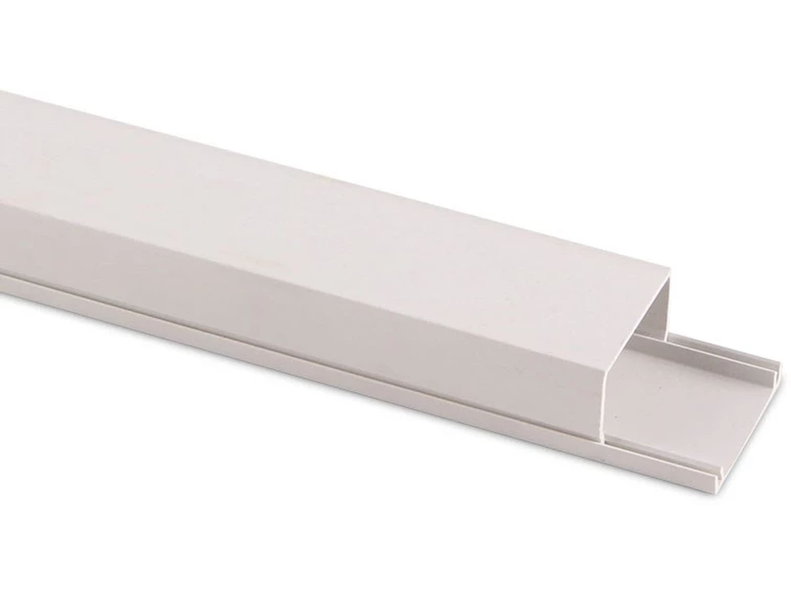 Den praktiske, avtakbare overdelen gjør det enkelt å legge inn kabler bak TV-en eller mellom høyttalere og stereoanlegg. Kabelkanalen er utstyrt med forborede hull for enkel veggmontering, og kan også festes med lim om ønskelig. Den hvite overflaten kan males, slik at du kan tilpasse fargen til resten av interiøret i hjemmet ditt.