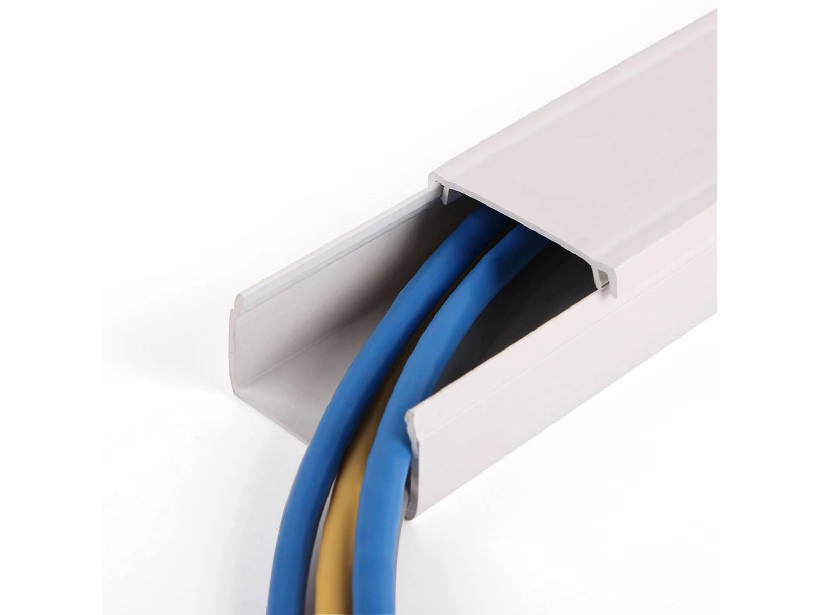 Kabelkanal som gir en ryddig og ledningsfri hverdag ved å skjule kablene dine på en effektiv måte. Med en størrelse på 15 x 10 mm kan den romme flere kabler samtidig, samtidig som den tar minimalt med plass. Den hvite fargen gjør at kabelkanalen passer diskret ved gulvlister eller langs veggen. Med en lengde på to meter er den enkel å plassere der du trenger den, og kan tilpasses ved å kutte den til ønsket lengde.