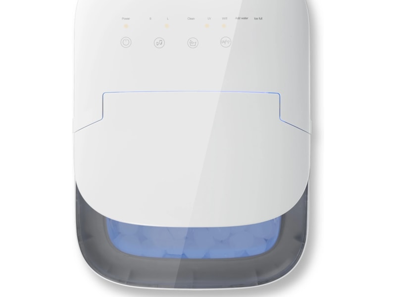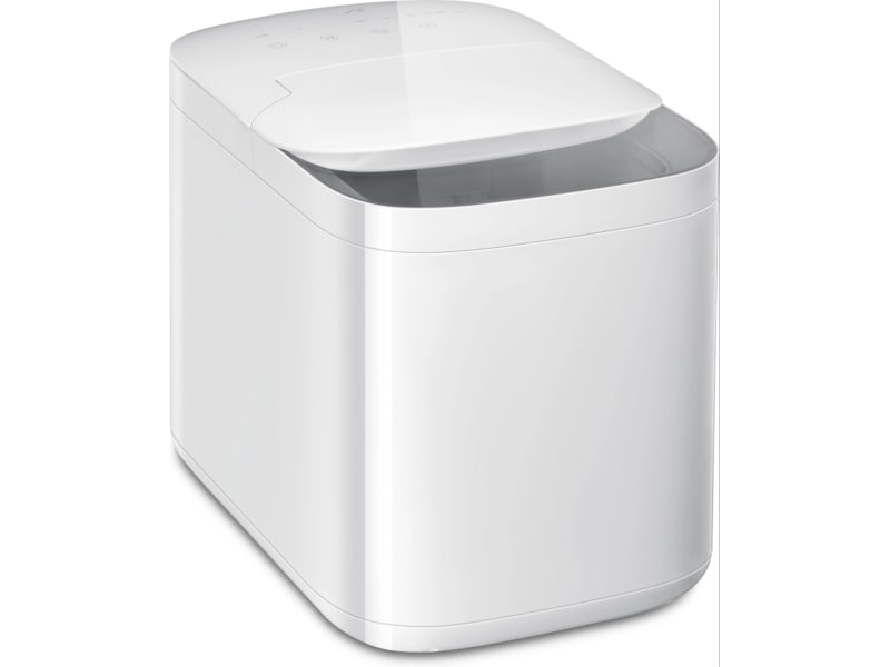 Denne isbitmaskinen kan lage opptil 15 kg is per dag. Maskinen kan styres via en app, men også med berøringsknappene på maskinen. Vannet desinfiseres med UV. Det finnes også et rengjøringsprogram som enkelt startes via en av knappene. Maskinen slår seg automatisk av hvis iskurven er full eller når det ikke er vann i den. Den medfølgende isskeen gjør det enkelt å plukke opp isbitene og fryse dem ned eller bruke dem direkte.