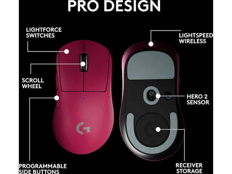 PTFE-museføtter, HERO 2-sensor, POWERPLAY Compatibility, Null utjevning/akselerasjon/filtrering, Innebygd minneprofil, LIGHTSPEED-teknologi, Asymmetrisk form, LIGHTFORCE optiske/mekaniske knapper