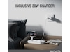 Oppdag den ultimate ladestasjonen for enhetene dine! Vår trådløse lader er den perfekte partneren for å lade smarttelefonen og TWS-headsettet ditt samtidig. For eksempel lades smarttelefonen din trådløst med lynrask 15W, mens TWS-headsettet ditt får strøm med 5W. Du kan lade smartklokken din via en av de to USB-C-portene ved hjelp av den originale ladeledningen som følger med smartklokken din, eller bruke en separat tilgjengelig ladeledning.