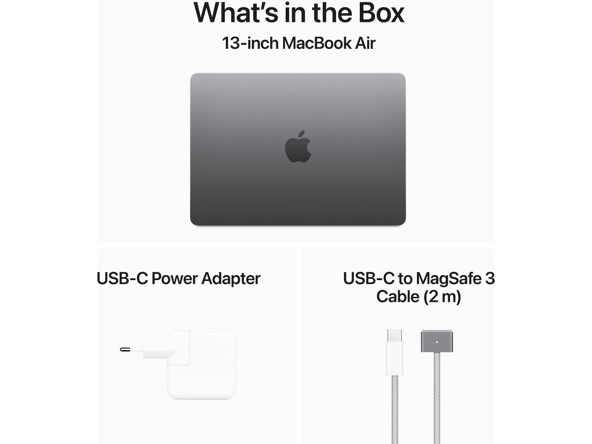 Inkludert tilbehør USB-C til MagSafe 3-ladekabel (2 m), USB-C kompakt strømadapter med to porter