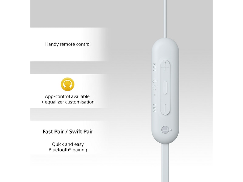 WI-C100 gir trådløse øretelefoner for nybegynnere en helt ny definisjon. Med den gode lydkvaliteten fra Sony gir de en rik lytteopplevelse, mens en lang batteritid på 25 timer og et sprutsikkert design gir deg ro i sjelen når du er på farten. De er også kompatible med Sony | Headphones Connect-appen, slik at du kan justere lyden slik du vil ha den.