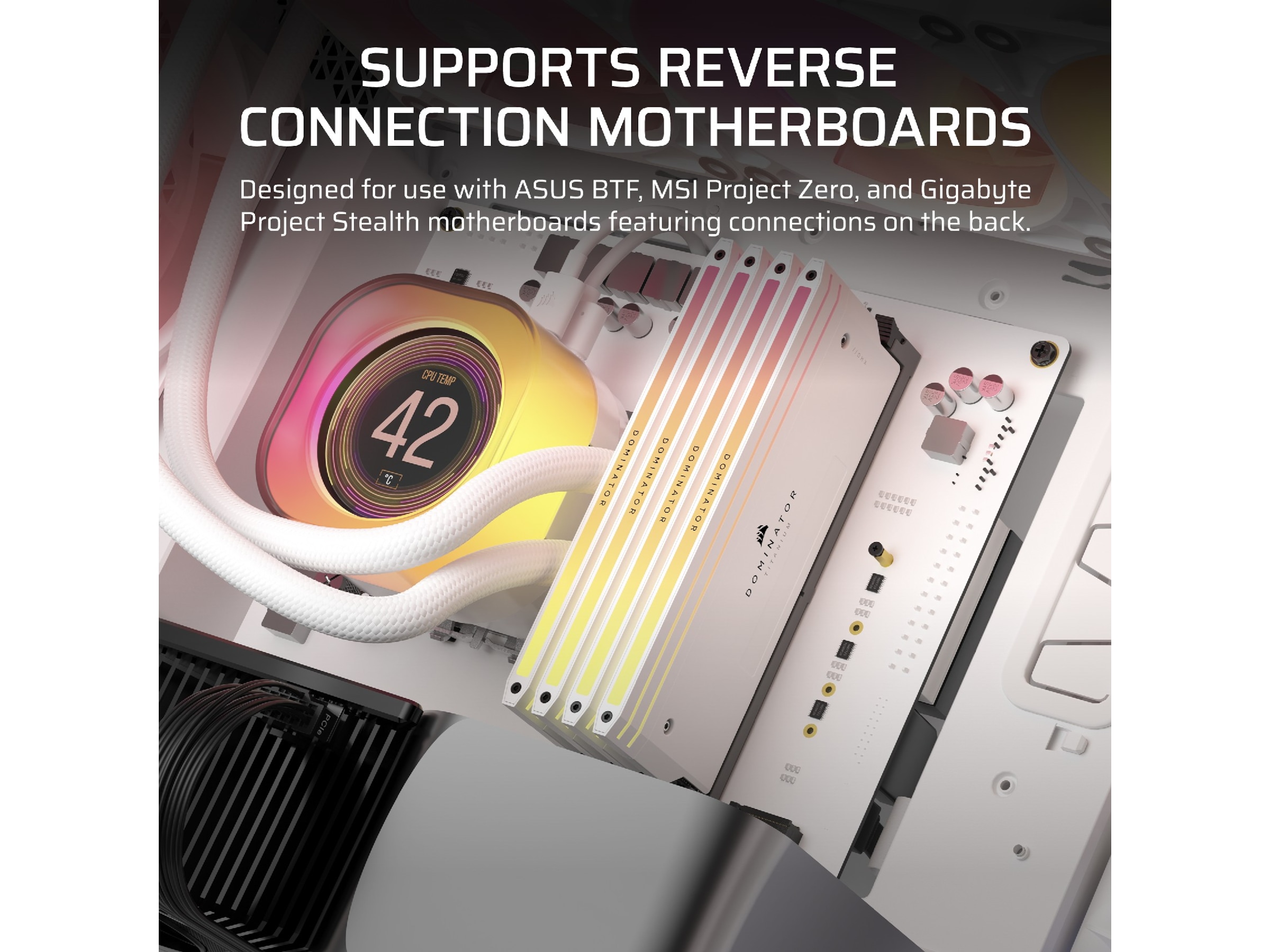 Validert for bruk med ASUS BTF-, MSI Project Zero- og Gigabyte Project Stealth-hovedkort med tilkoblinger på baksiden av kortet, slik at utsikten din ikke blir ødelagt av kabler.