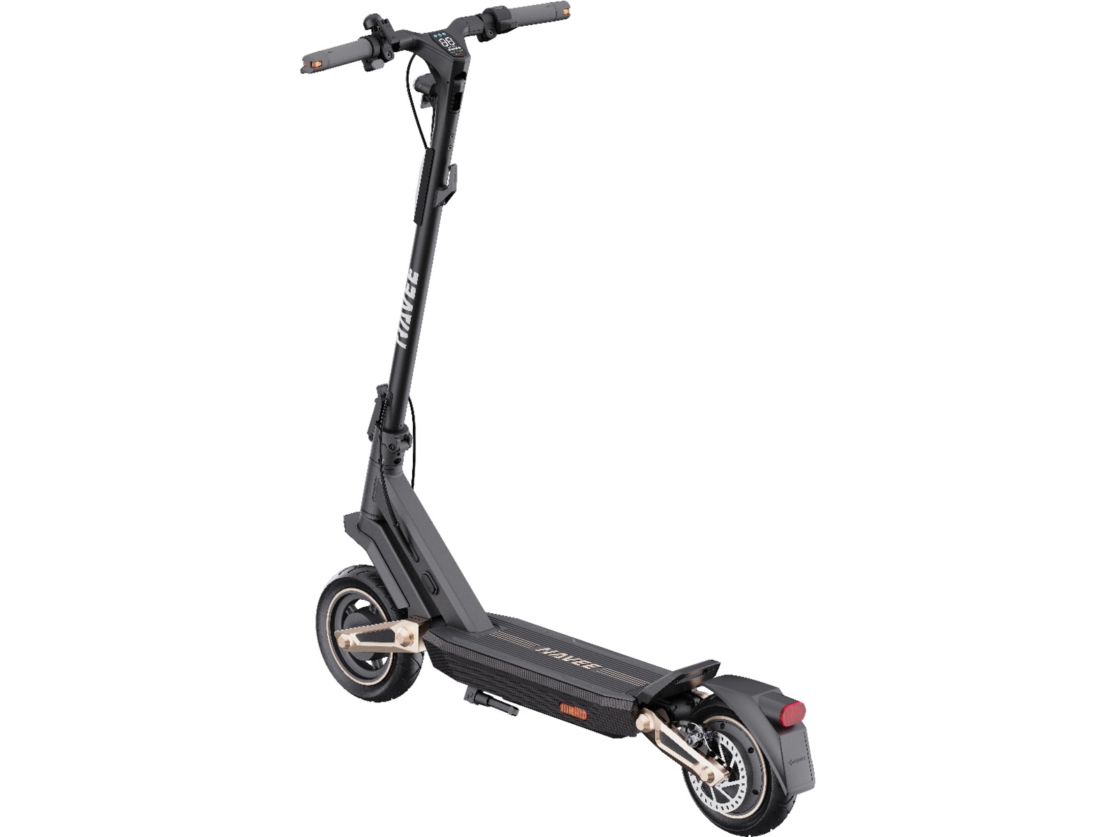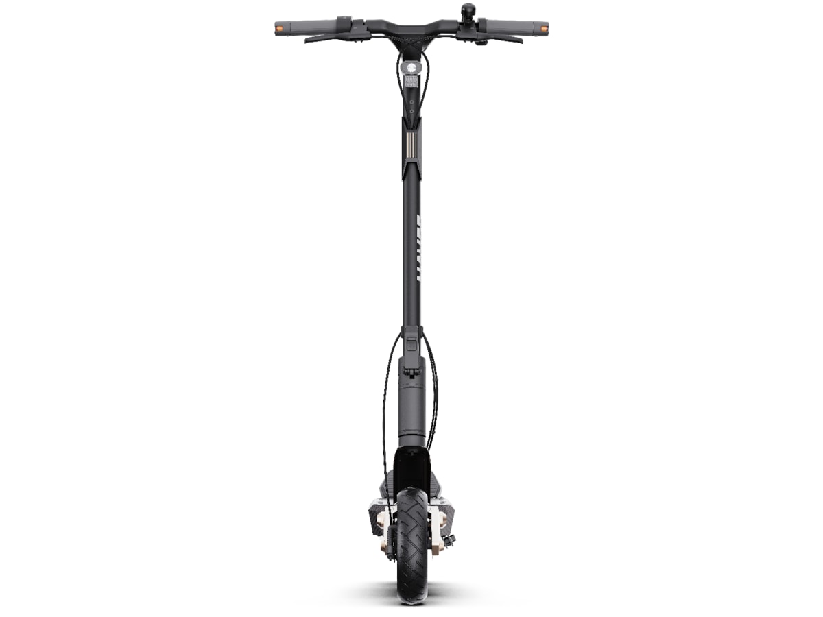 Den ekstra brede 190 mm fotplaten gir god plass til å stå komfortabelt, mens en bakkeklaring på 115 mm gjør det enklere å håndtere humper og hindringer i veien. Modellen er også utstyrt med innebygde blinklys, som gjør det lettere å signalisere svinger og øker sikkerheten i trafikken. Den automatiske frontlyktsensoren justerer lysstyrken etter omgivelsene, slik at du alltid har maksimal sikt uansett tid på døgnet. Andre sikkerhetsfunksjoner inkluderer bremselys, blinklys og en mekanisk bjelle, slik at du både blir sett og hørt i trafikken.