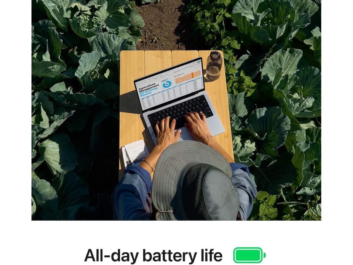 • OPPTIL 24 TIMERS BATTERITID(1) – 14-tommers MacBook Pro har den samme utrolige ytelsen – uansett om den drives av batteriet eller er koblet til strøm.