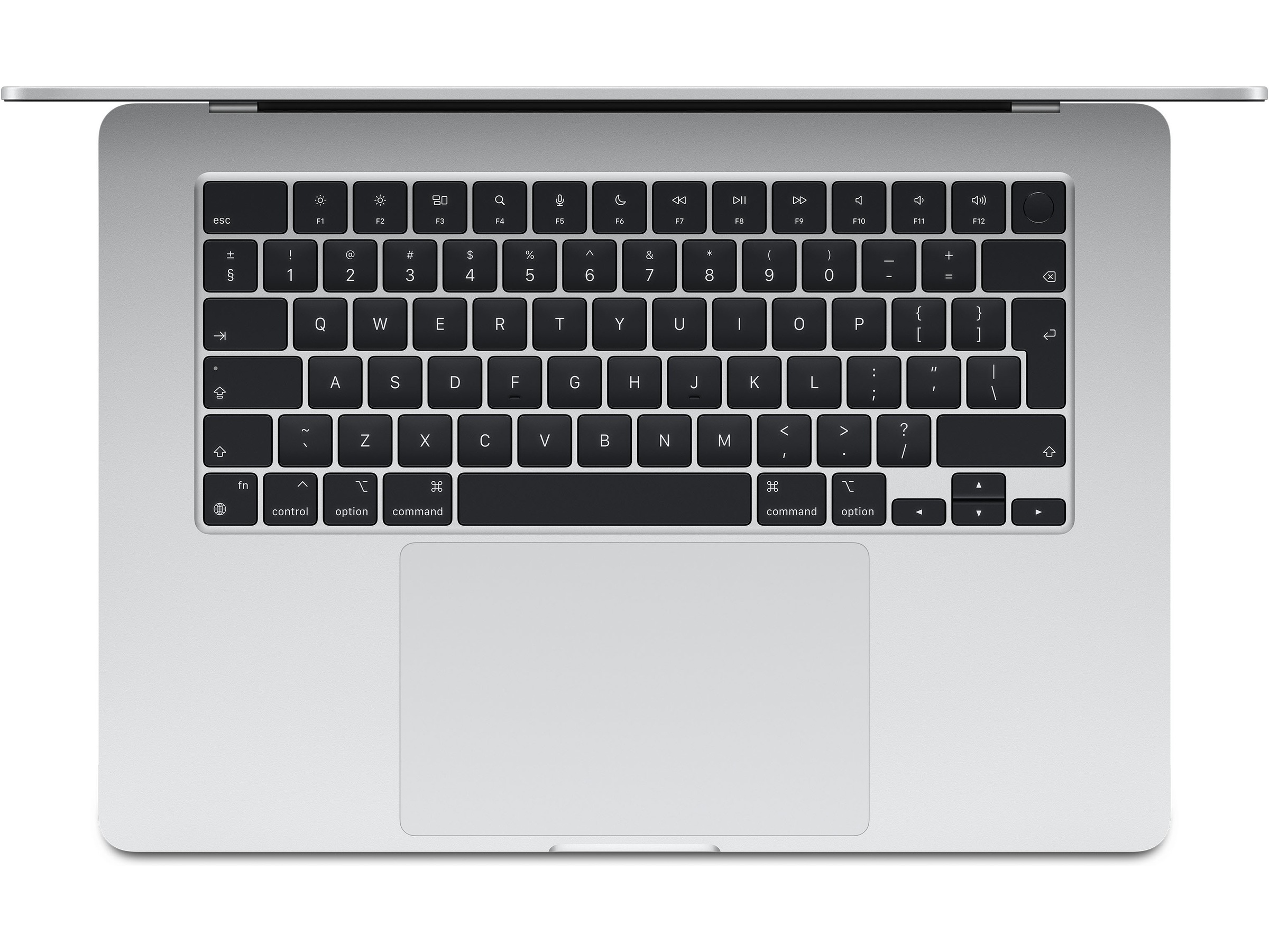 2) Skjermen på 15-tommers MacBook Air har avrundede hjørner på toppen. Skjermen måler 15,3 tommer på diagonalen i et rektangel. (Den faktiske synlige skjermflaten er mindre.)