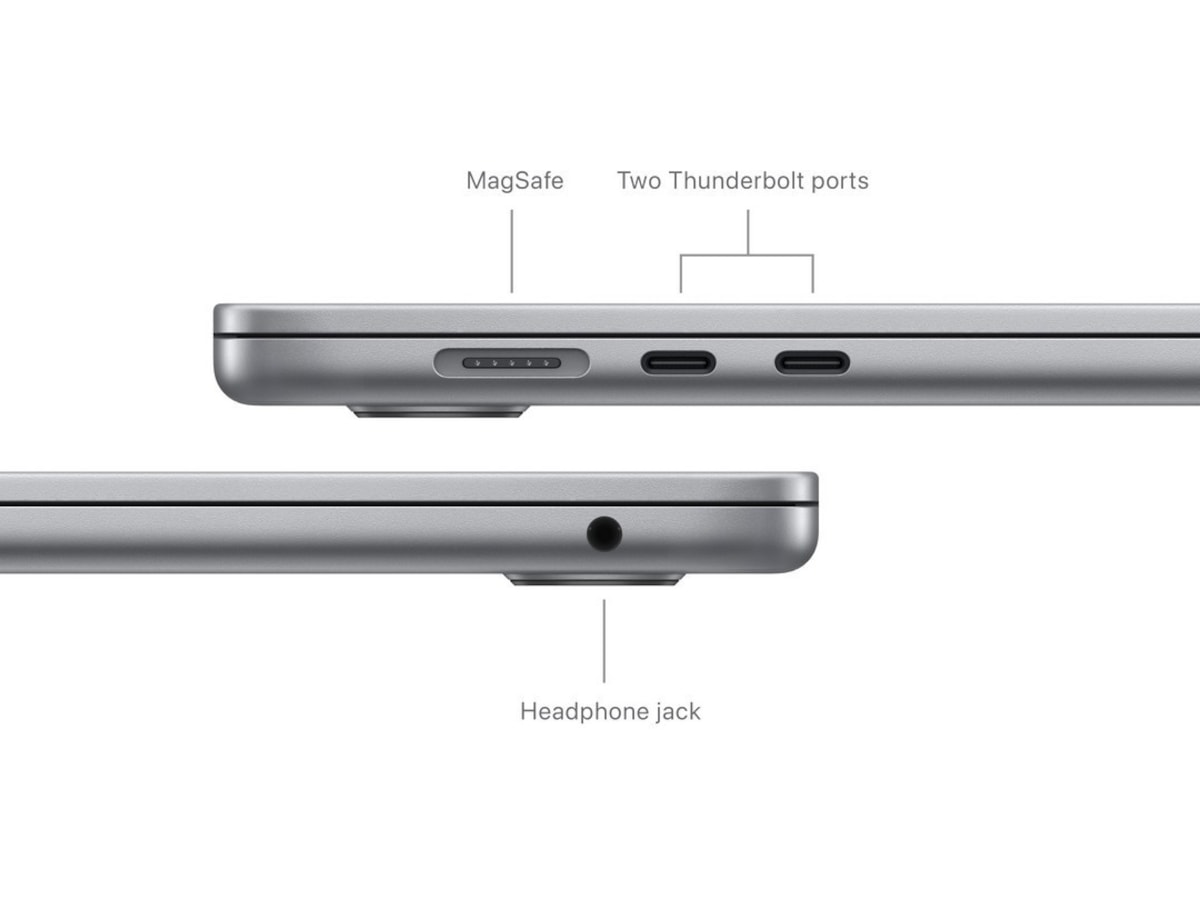 - FULLKONTAKT – MacBook Air har to Thunderbolt-porter, en hodetelefonutgang, wifi 6E,(4) Bluetooth 5.3 og en MagSafe-ladeport. Koble til opptil to eksterne skjermer med maskinen lukket.