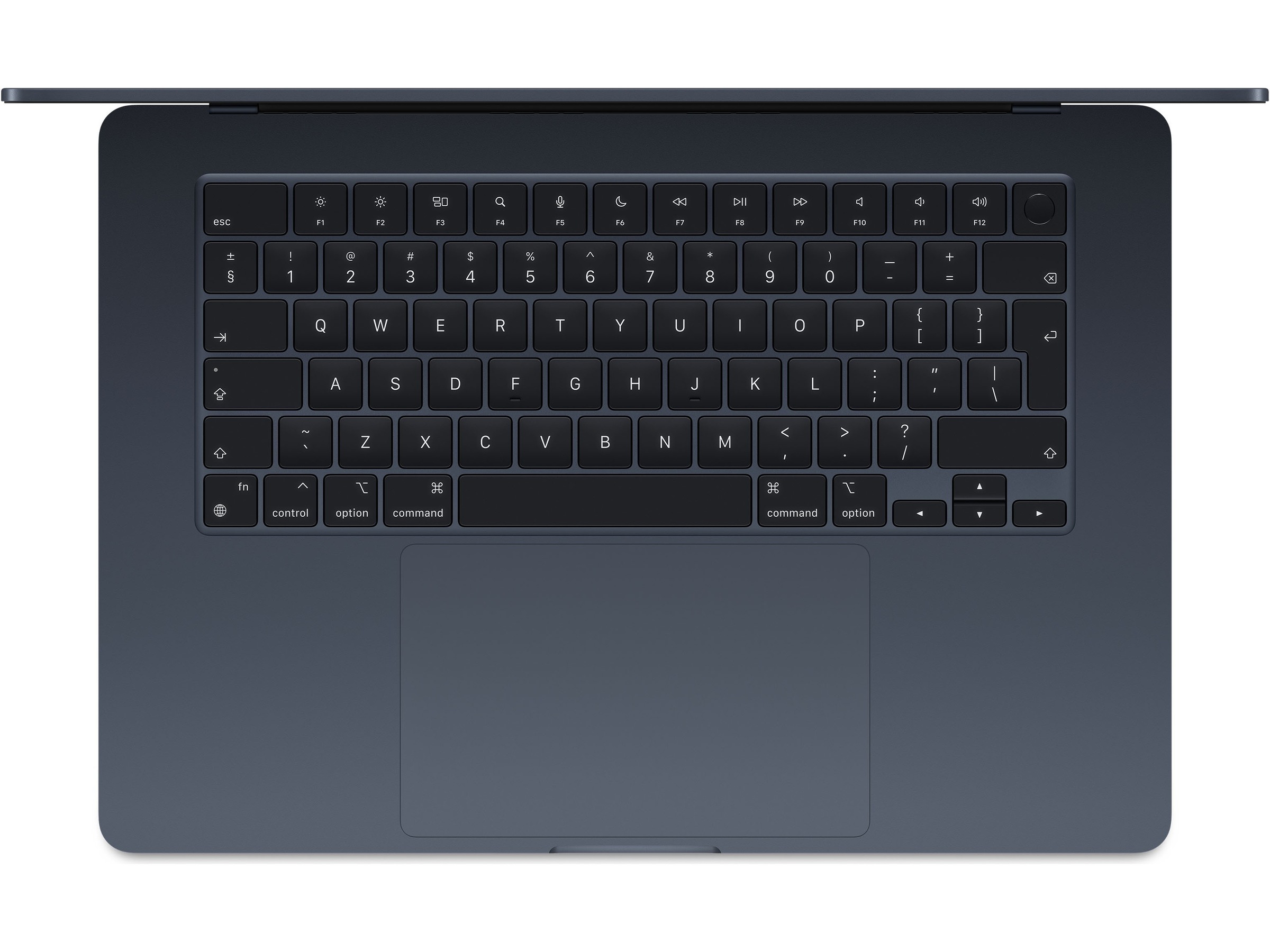 2) Skjermen på 15-tommers MacBook Air har avrundede hjørner på toppen. Skjermen måler 15,3 tommer på diagonalen i et rektangel. (Den faktiske synlige skjermflaten er mindre.)