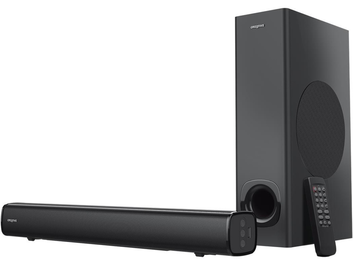 1 x subwoofer - 40 watt, 1 x lydbjelke - 40 watt - under skjermen