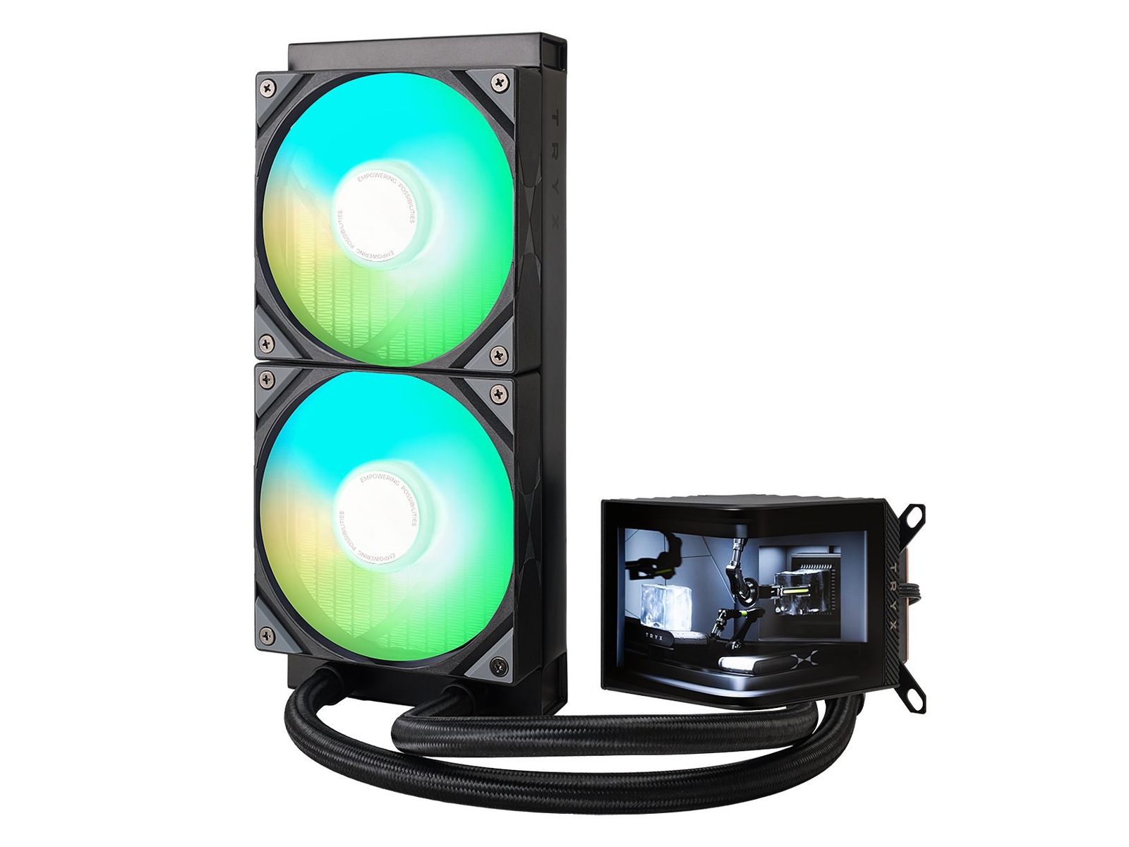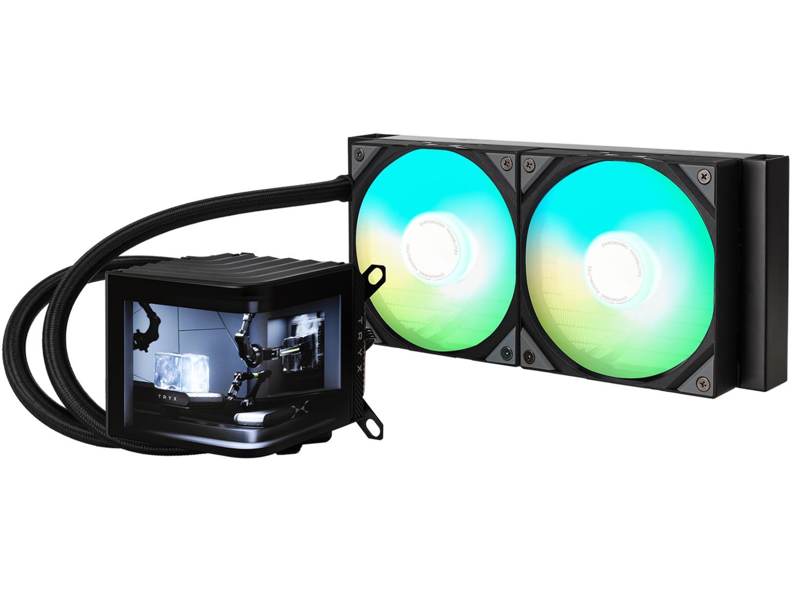 Hylsede rør (400 mm), Vifteblader av flytende krystallpolymer (LCP), Integrerte vibrasjonsdempeputer, 2k@60Hz oppdateringsfrekvens skjerm, Anamorf 3D-skjerm, ARGB fans, 8.-generasjons Asetek-pumpe, Delt skjermvisning, L-formet 6,5" LED-skjerm