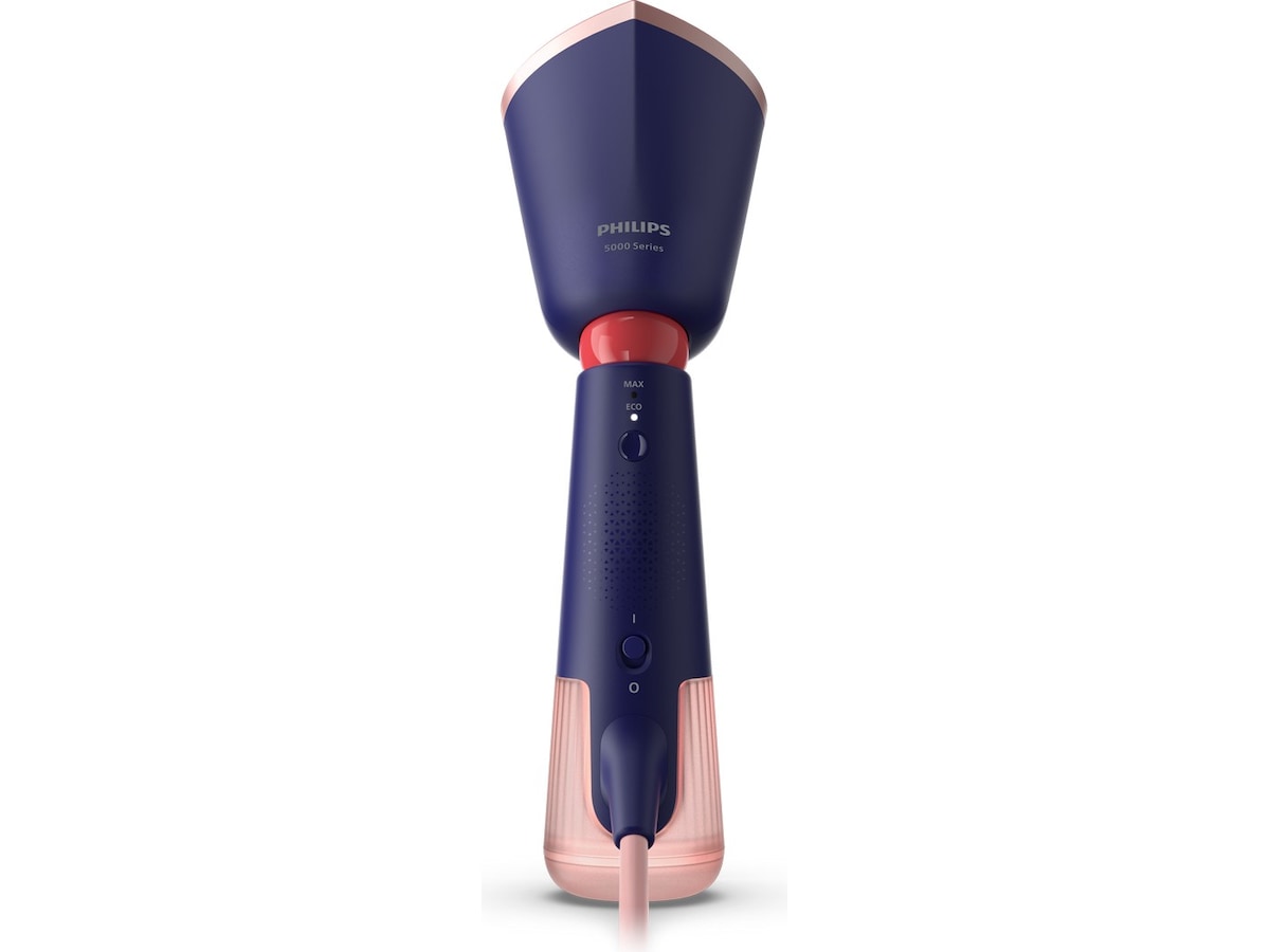 Philips håndholdte steamer 5000 Series fjerner skrukker fra alle plagg som kan strykes. Standardinnstillingen Eco er perfekt for å spare strøm, mens Max har et kraftigere dampnivå som takler krevende skrukker og stoff som bomull.