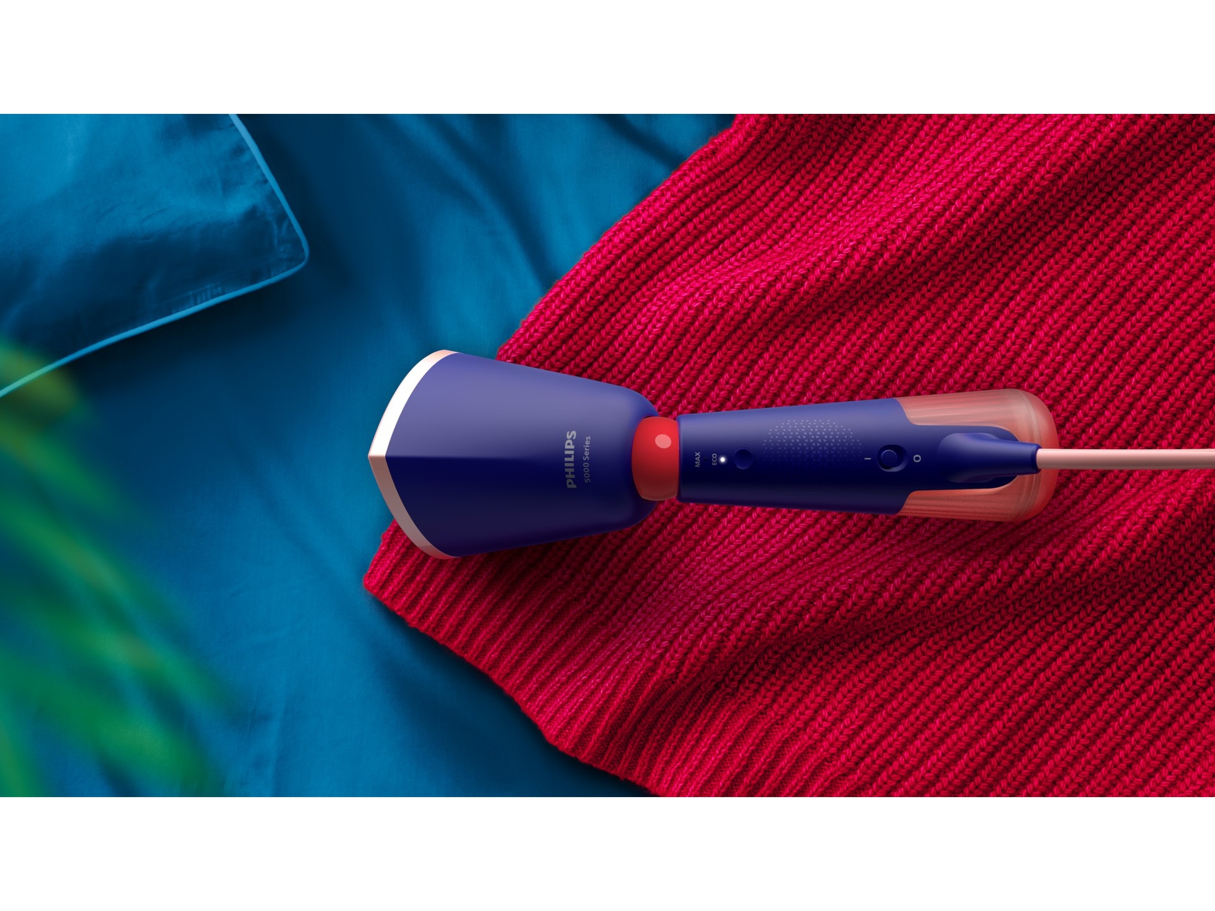 Philips håndholdte steamer 5000 Series er utrolig lett å bruke, og varmes opp på bare 35 sekunder. Nå trenger du ikke det upraktiske strykebrettet lenger. Bare steam plagg direkte på kleshengeren eller på en flat overflate, så er jobben gjort.