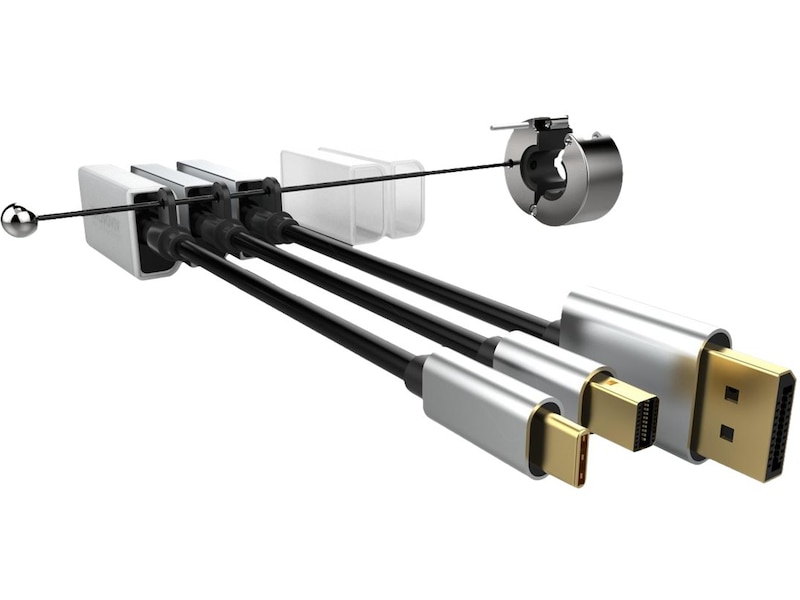 Med en Vivolink HDMI Adapter-ring sikkert låst til HDMI-kabelen i møterommet, er alt klart når det trengs. Adapterringen leveres med en spesiallås for HDMI-kabel, slik at den ikke kan fjernes uten verktøy.