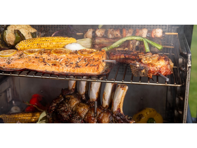 - 4 sonder: 5 interne temperatursensorer i hver sonde kan overvåke innvendig kjøtttemperatur på opptil 100 °C og omgivelses/ekstern temperatur opp mot 535°C samtidig.