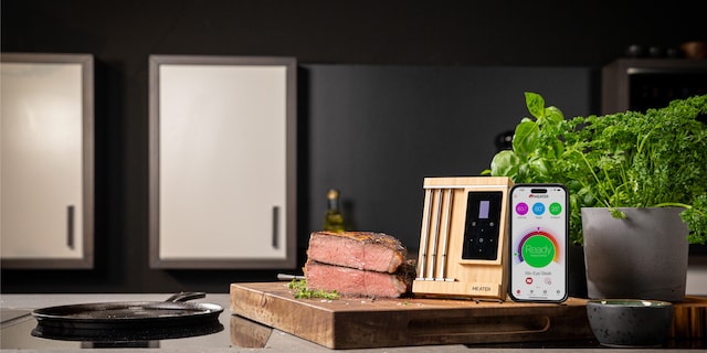 - Stek og følg instruksjonene for appen. Appen vil estimere steketiden din og gi deg beskjed når det er på tide å ta kjøttet fra varmen og la det hvile til riktig temperatur.