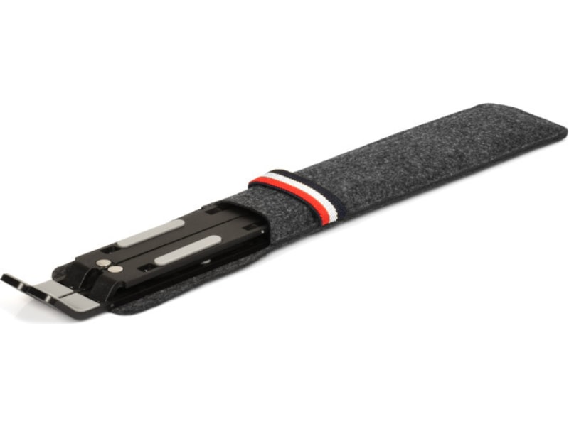 Strukturen er sammenleggbar, ultratynn og lett for maksimal portabilitet. En lomme følger med stativet.