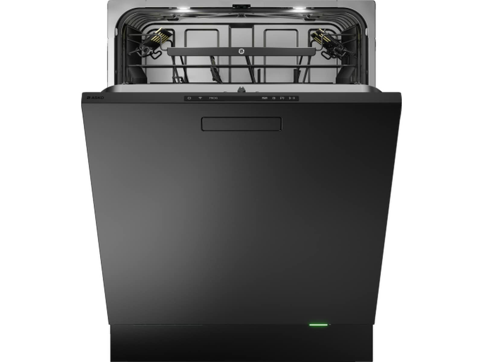 En integrert oppvaskmaskin i XL-størrelse i svart stål testet for 20 års bruk, med eksklusivt Flexi Racks™-system i 2 nivåer (pluss en midthylle) som har plass til opptil 14 kuverter.