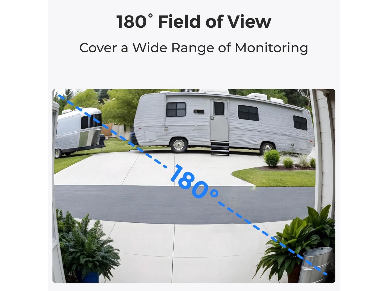 Reolink D340W har en skarp 5MP 2K+-oppløsning, noe som gir deg detaljer som er dobbelt så tydelige som tradisjonell Full HD. Dermed kan du enkelt identifisere ansikter, lese skilt eller se små gjenstander ved døren. Den 180° diagonale visningen fanger opp hele personen foran døren, selv om de står tett inntil, og viser pakker og andre detaljer i en bred kontekst. Dette gir deg full kontroll over hva som skjer utenfor hjemmet ditt, dag og natt.