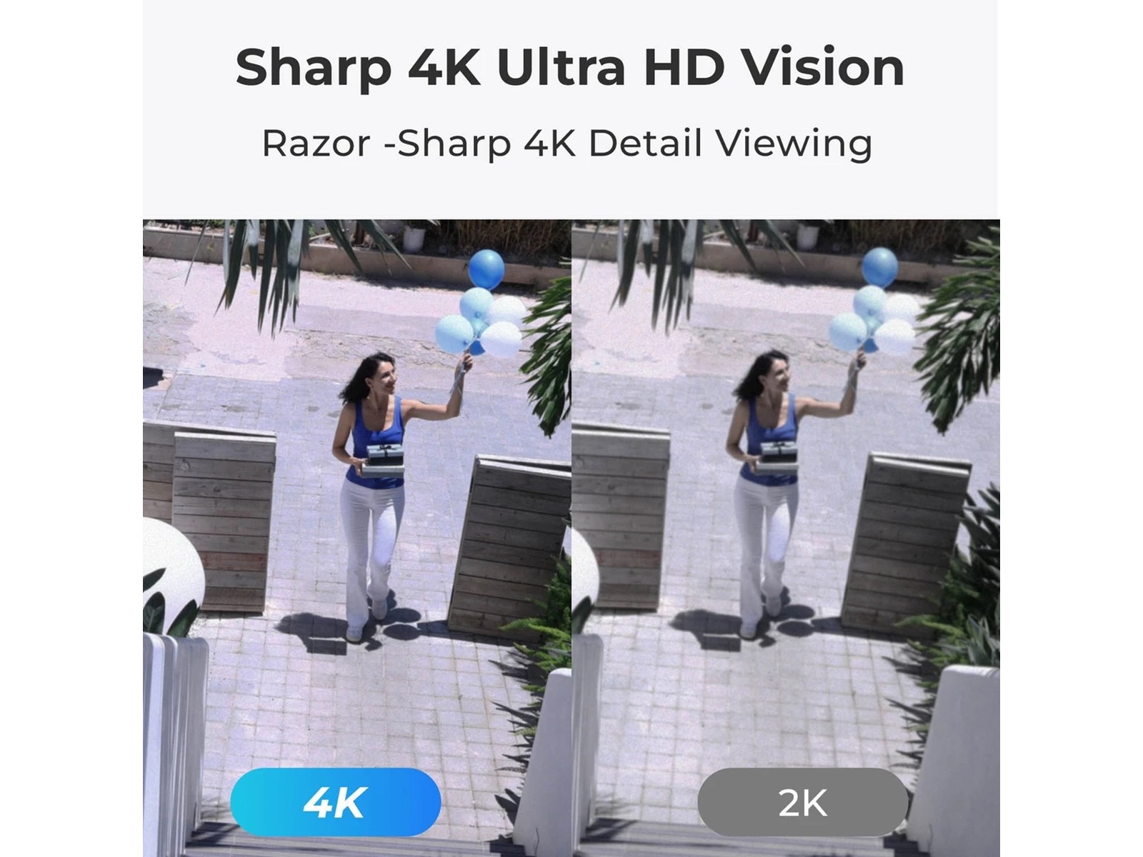 Med en oppløsning på 4K (8 MP) leverer Reolink TrackMix W760 en skarp bildekvalitet som overgår tradisjonell Full HD. Den høyere oppløsningen gjør at selv de minste detaljene - som ansikter, bilskilt eller små bevegelser - fanges opp. Uansett om det er dag eller natt, sørger kameraets kraftige bildesensor for at du får et klart og skarpt bilde, noe som gir deg full kontroll og trygghet.