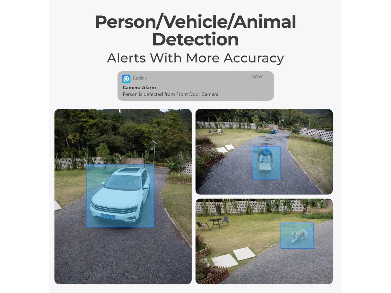 - Intelligent deteksjon: Oppdag personer, kjøretøy og til og med kjæledyr med presisjon.