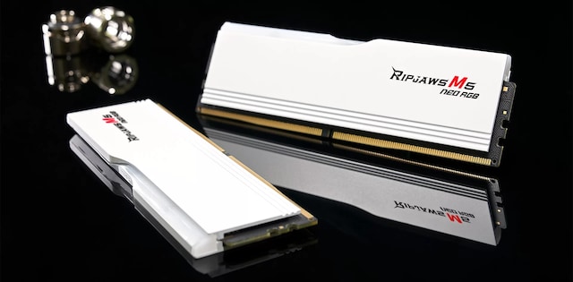 Bygget på flere tiår med erfaring i utviklingen av stilminne med høy ytelse, er Ripjaws M5 Neo RGB-serien DDR5 DRAM-minne laget med håndplukkede IC-er, kommer med aluminiumsvarmespredere i matte svarte eller matte hvite farger, og støtter tilpassbar RGB-belysning.