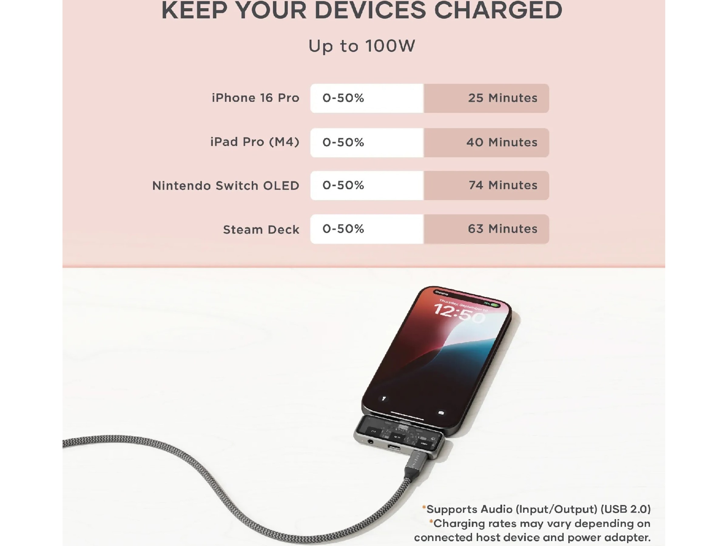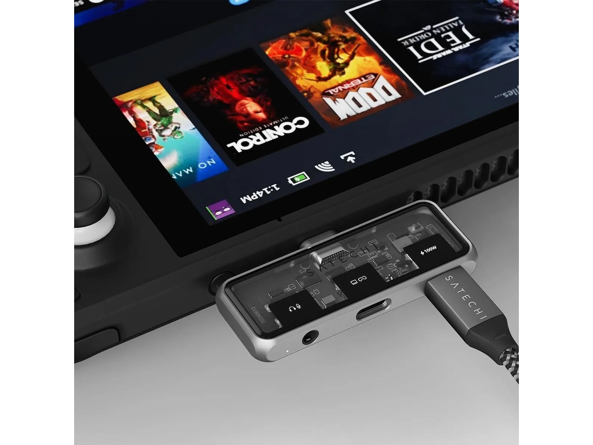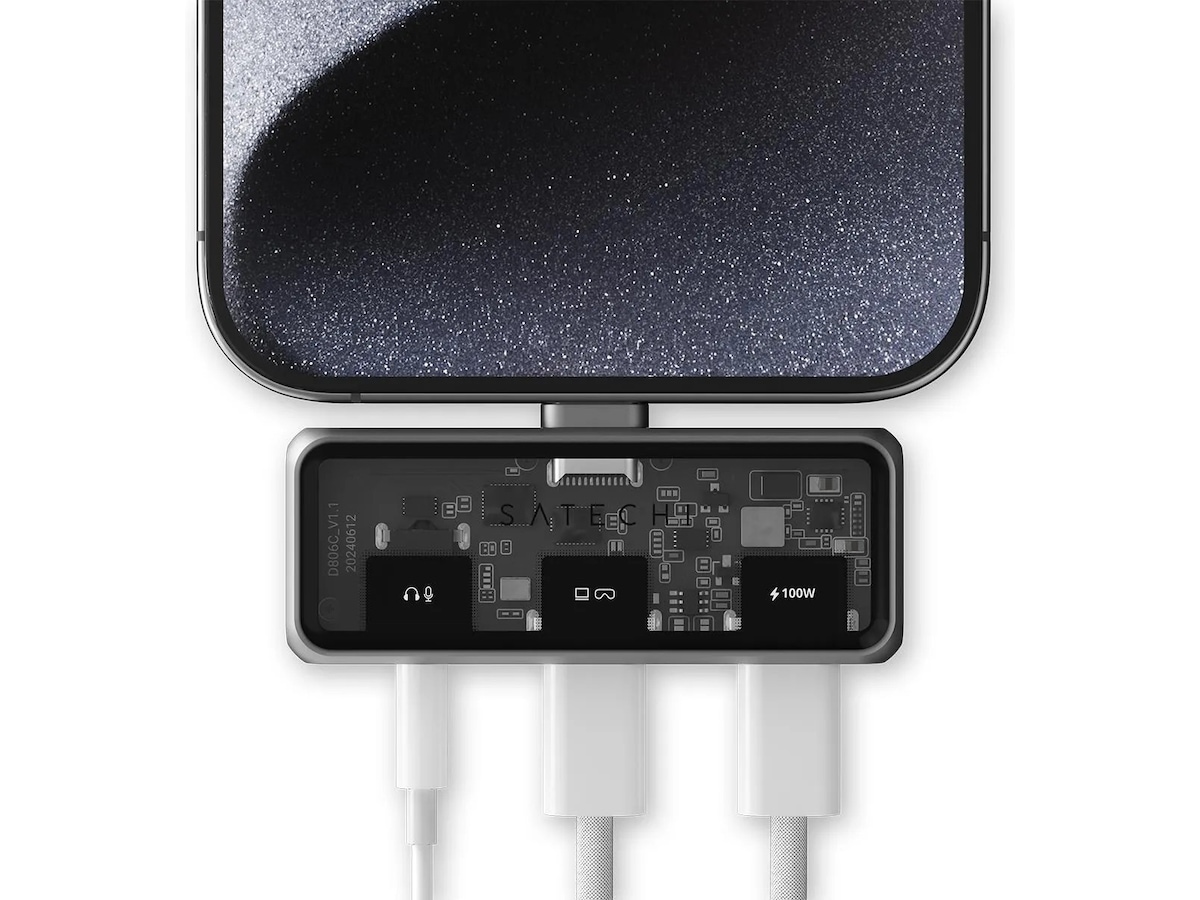 Keep your devices powered up with ultra-fast charging capabilities. Whether you're charging your smartphone, tablet, or headphones, the Satechi Mobile XR Hub ensures they stay charged and ready for use. —up to 27W for iPhones, 45W for Nintendo Switch, and 100W for laptops— ensuring you can stay fully immersed with your XR glasses without worrying about draining your host device’s battery.