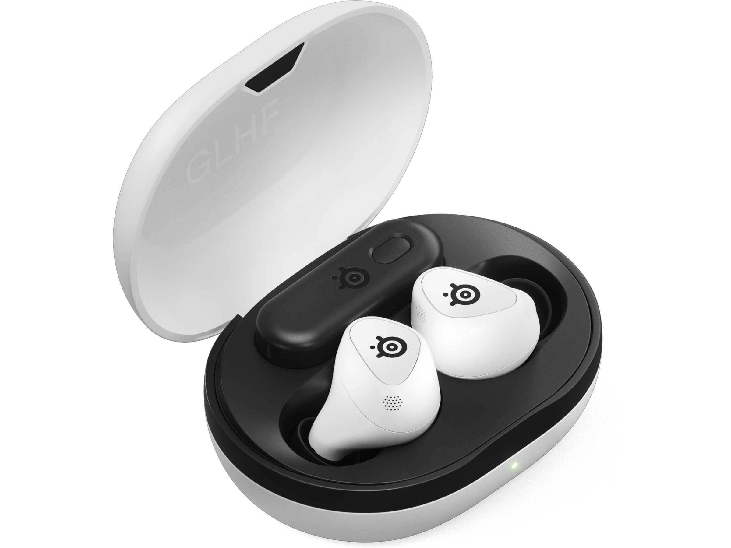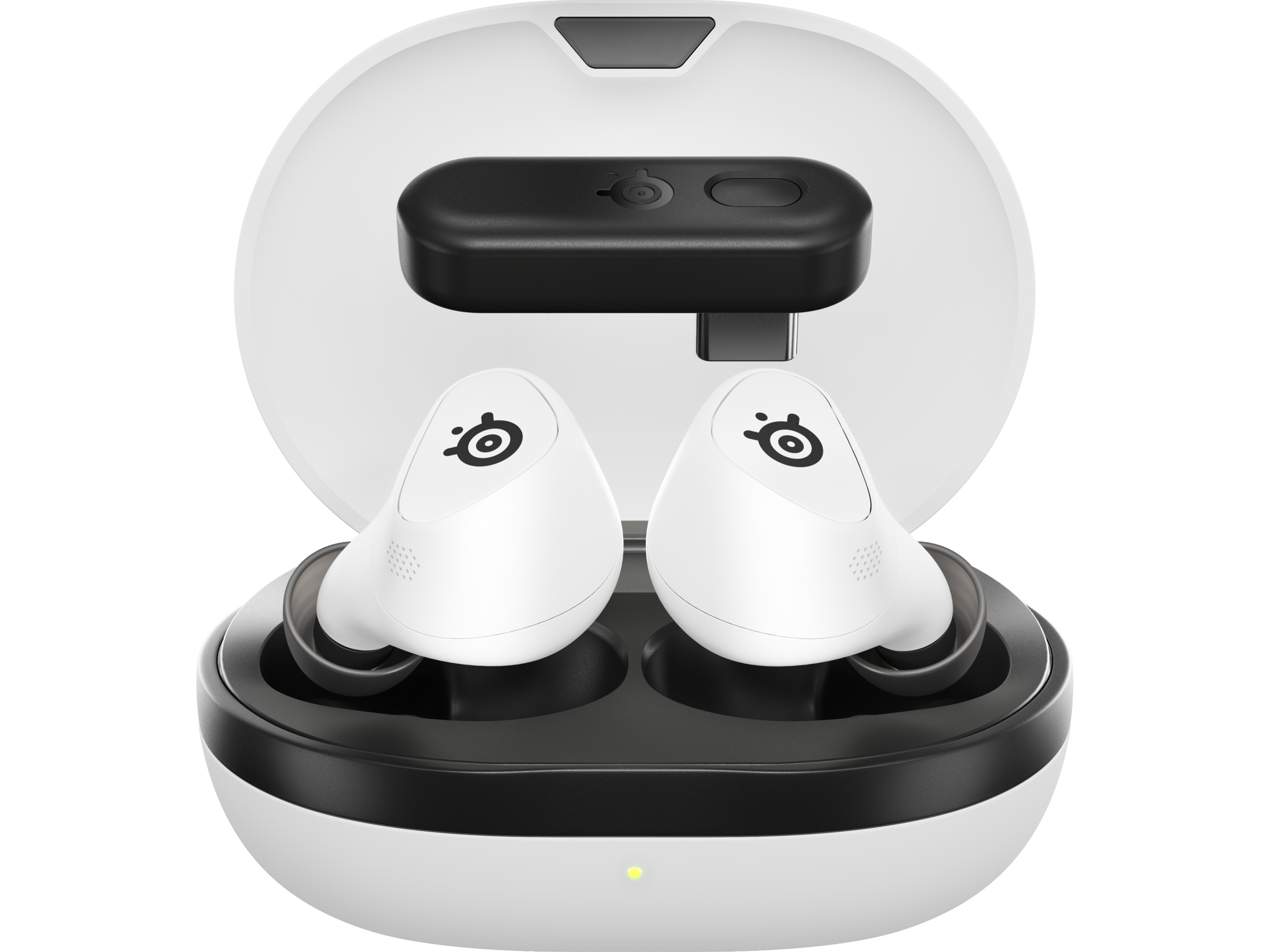 3 par silikonøretupper (små, medium, stor), USB-C-kabel, USB-C dongle, Ladeboks