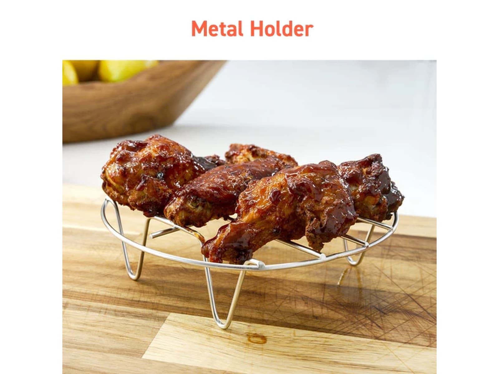 • Metallholder: Flott for kjøtt og fisk, hever panner og former, eller enkel matfjerning.