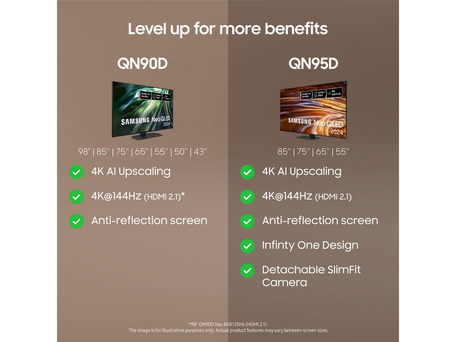 Neo QLED og Quantum Matrix Technology bruker en Mini LED-lyskilde for nøyaktige fargenyanser og kontraster. AI justerer også innholdet for klare farger og dyp kontrast, selv på lyse sommerkvelder.