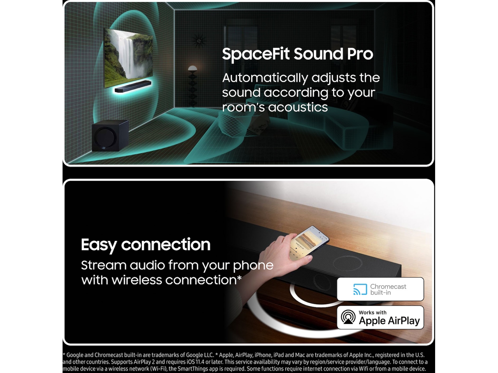 Clear Voice, Utvidelse for surroundlyd, Adaptive Sound Mode, Night Mode, Game Mode Pro