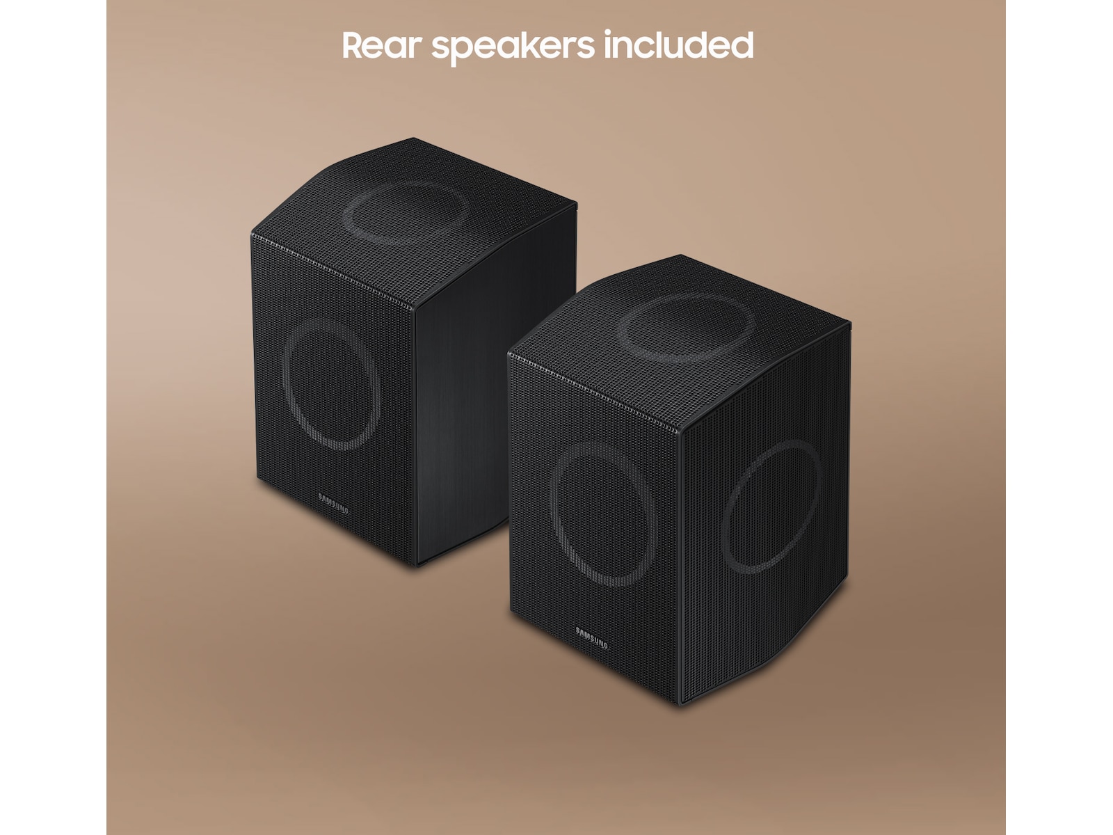 1 x lydbjelke - vegg-/bordmonterbar, 1 x subwoofer - trådløs, 2 x bakkanalshøyttaler - trådløs