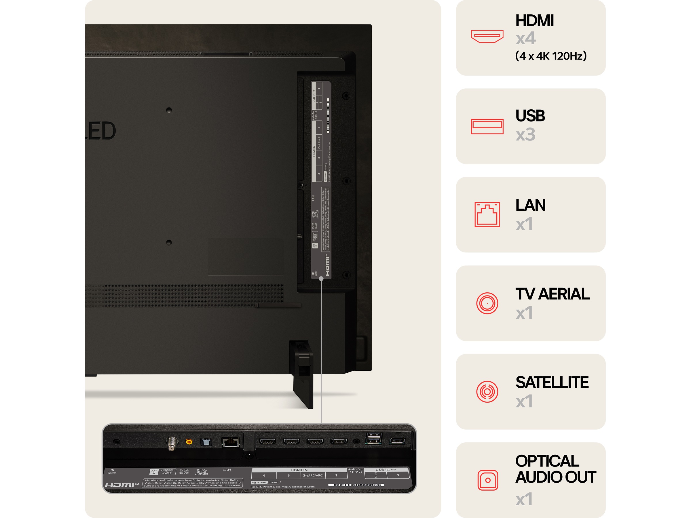 Egenskaper AI Genre Selection, Freesync, Family Settings, Intelligent Voice Recognition, AI Brightness Control, Støtte for Apple AirPlay 2, G-SYNC Compatible, Smarttelefon fjernstyrt, Støtte for USB-nettkamera, Always Ready, Game Dashboard