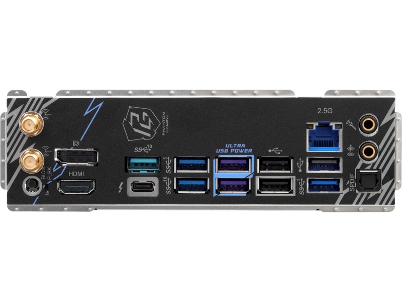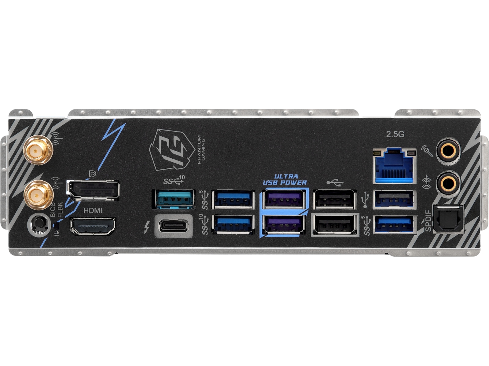 Grensesnitt 1 x HDMI, 1 x DisplayPort, 2 x antenne, 1 x Thunderbolt 4, 1 x SPDIF-utgang, 1 x lydutlinje, 1 x mikrofon, 2 x USB 3.2 Gen 2, 1 x LAN (2.5Gigabit Ethernet), 3 x USB 2.0, 4 x USB 3.2 Gen 1