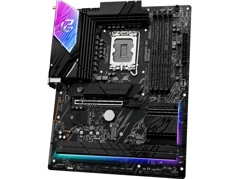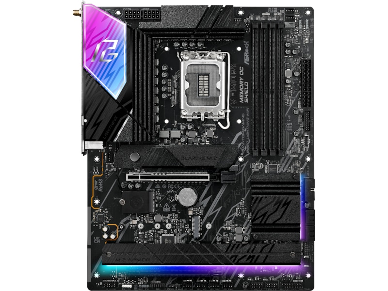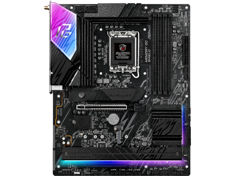 ASRock's eksklusive Minne OC Shield er en patentert funksjon utviklet for å redusere elektromagnetisk interferens (EMI) som kan påvirke minneoverklokking. Ved å skjerme minnemoduler fra EMI-støy og optimalisere oppsettet, forbedrer Minne OC Shield stabilitet og pålitelighet under høyfrekvente operasjoner, og gjør det mulig for brukere å presse systemene sine til maksimal ytelse.