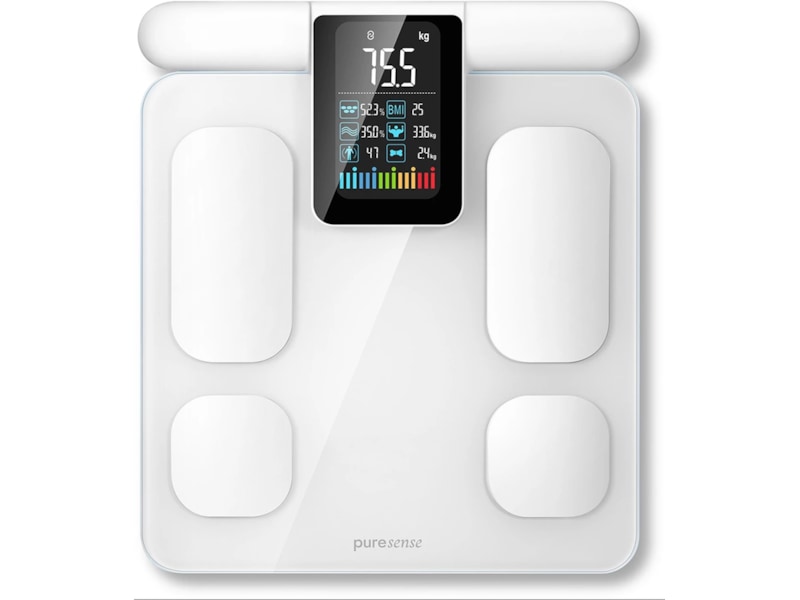Med denne smarte kroppsvekten fra PureSense kan du få et detaljert bilde av kroppssammensetningen din. Med over 20 ulike typer kroppsmålinger går vekten langt utover enkel vektmåling. Den registrerer vekt, BMI, kroppsfett, muskelmasse, beinmasse, proteinnivåer og kroppsvann - alt for å gi deg et omfattende bilde av helsen din.
