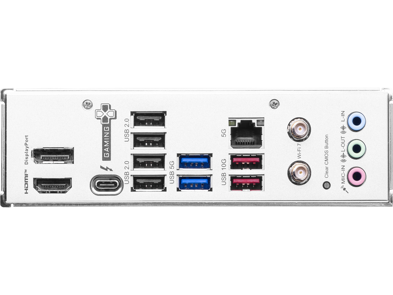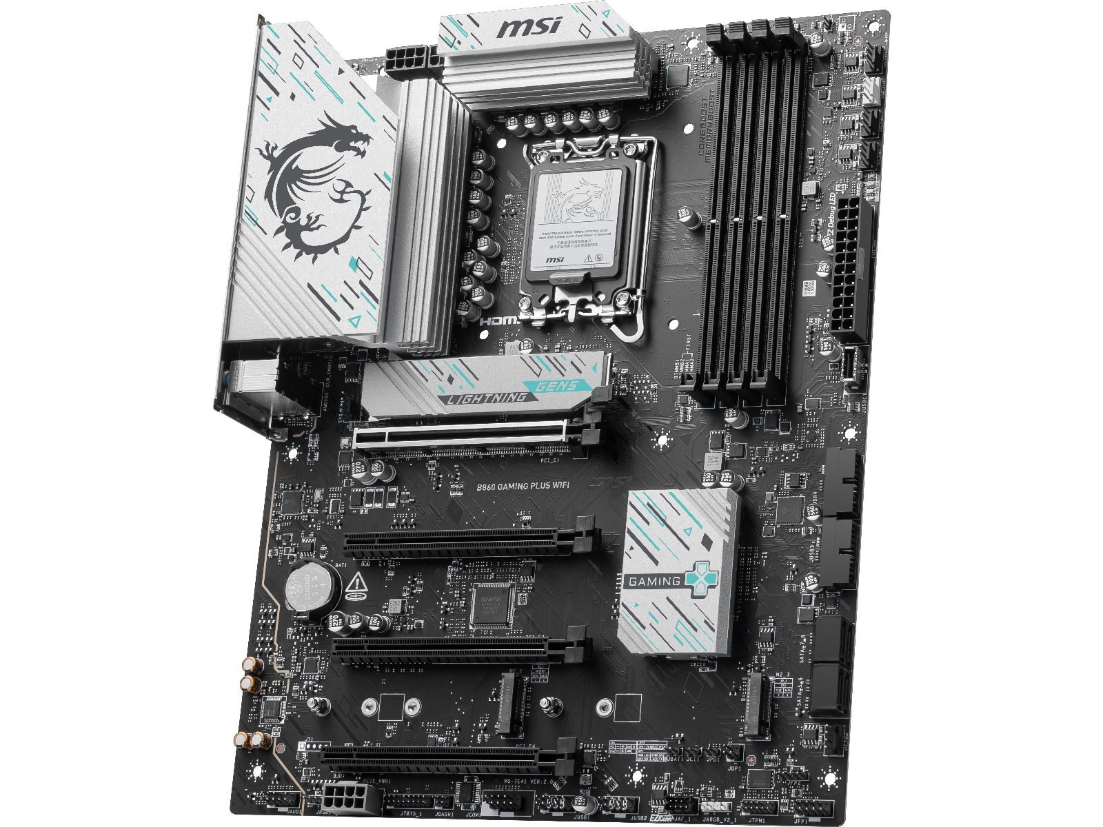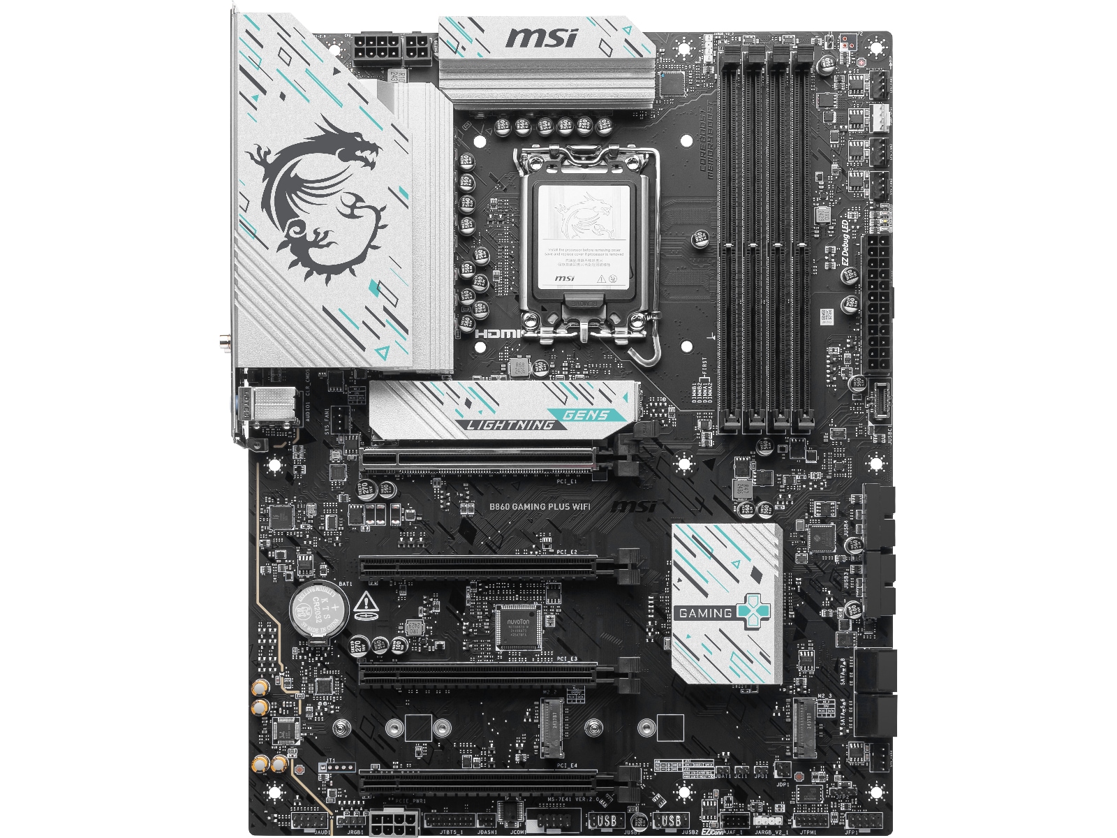 B860 GAMING PLUS WIFI er laget for å tilby omfattende tilkoblingsmuligheter, allsidige verktøy og en førsteklasses Wi-Fi-løsning for gamere som søker en helhetlig opplevelse. Med Thunderbolt 4-port, full hastighet Wi-Fi 7, 5G LAN, PCIe 5.0-løsning, ekstra PCIe-strøm og eksklusive EZ DIY-funksjoner, er den klar for 24/7 kontinuerlig gaming optimalisert for Intel Core Ultra-prosessorer.