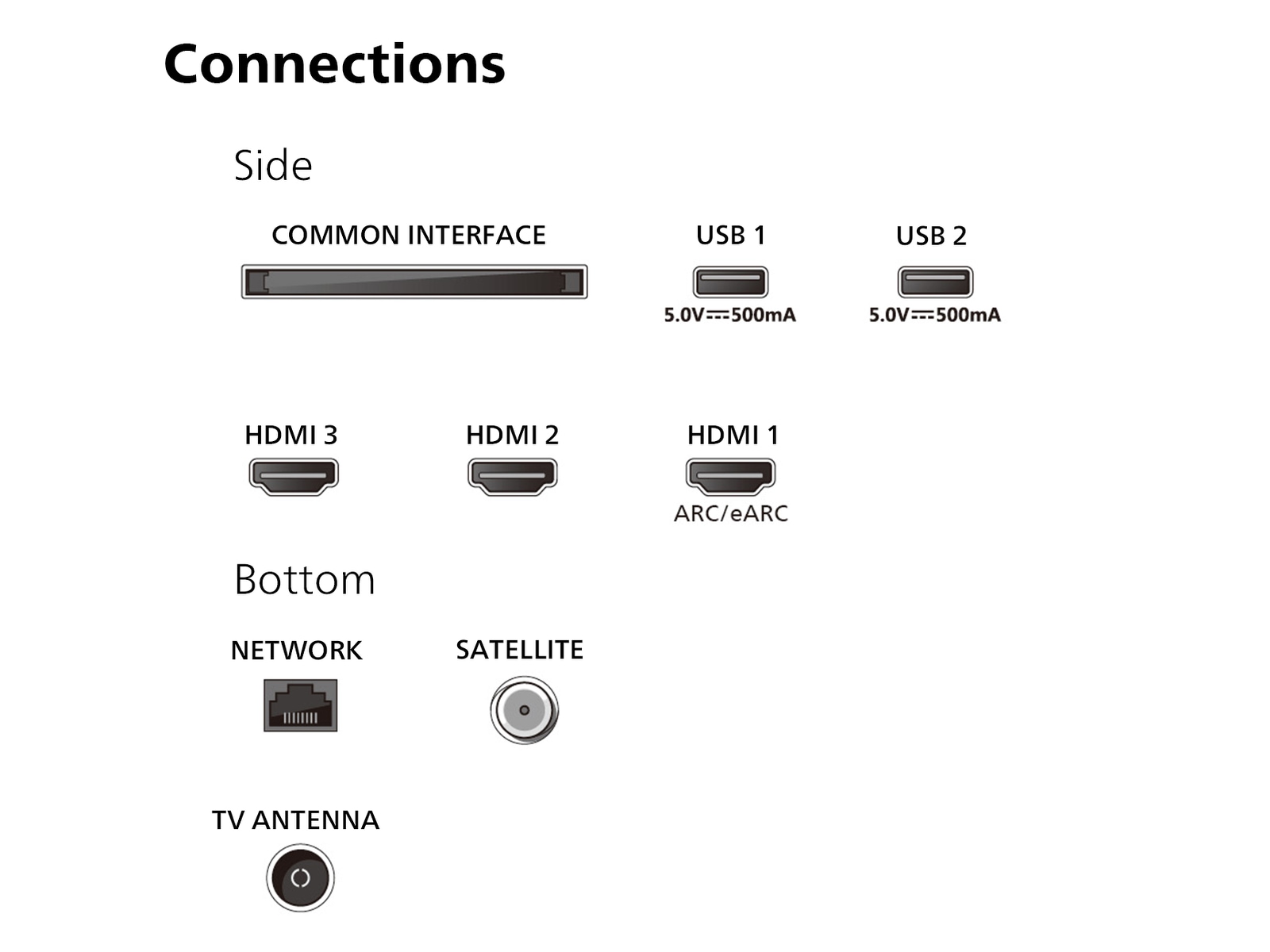 3 x HDMI - side, 2 x USB - side, LAN - bunn