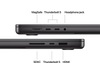 - KOBLE TIL ALT – 16-tommers MacBook Pro har tre Thunderbolt 5-porter, en MagSafe 3-ladeport, SDXC-kortplass, HDMI-port og hodetelefonutgang. Og den støtter opptil to eksterne skjermer med M4 Pro, eller opptil fire med M4 Max.