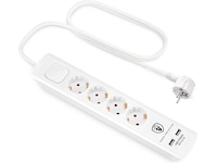 Praktisk strømforgrener med fire jordede strømuttak og to USB-porter for lading av USB-drevne enheter. Med både strømuttak og USB-porter passer strømforgreneren perfekt på steder der du både behøver flere strømtilkoblinger samt lader mobiltelefonen eller nettbrettet. På baksiden av strømforgreneren finner du to opphengsbeslag som gir deg muligheten til å henge opp strømforgreneren der du ønsker det.