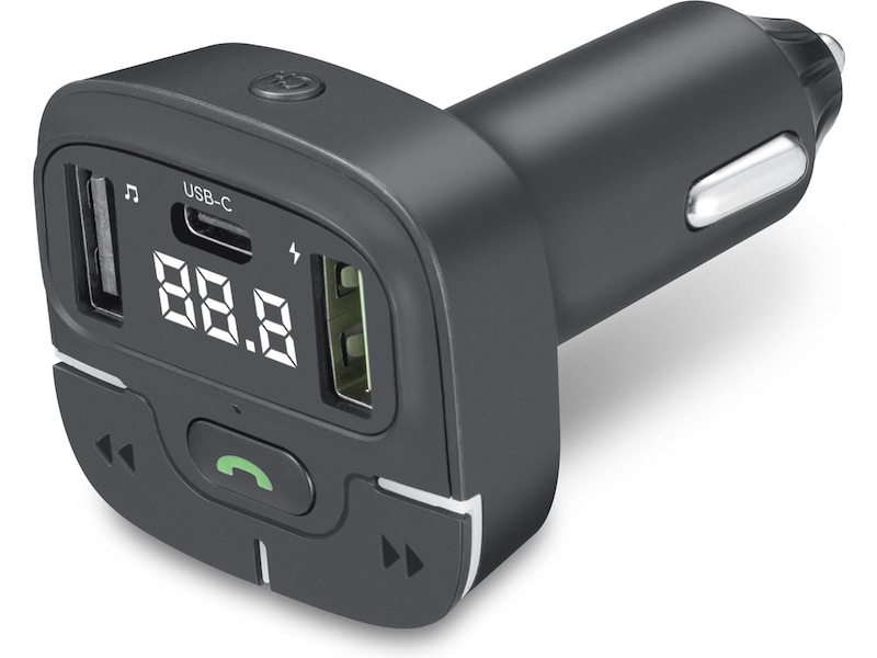 Senderen er laget av slitesterk ABS-plast og har en kompakt design som enkelt passer inn i bilens stikkontakt. Til tross for den lille størrelsen har den kraftig ytelse og lang levetid.