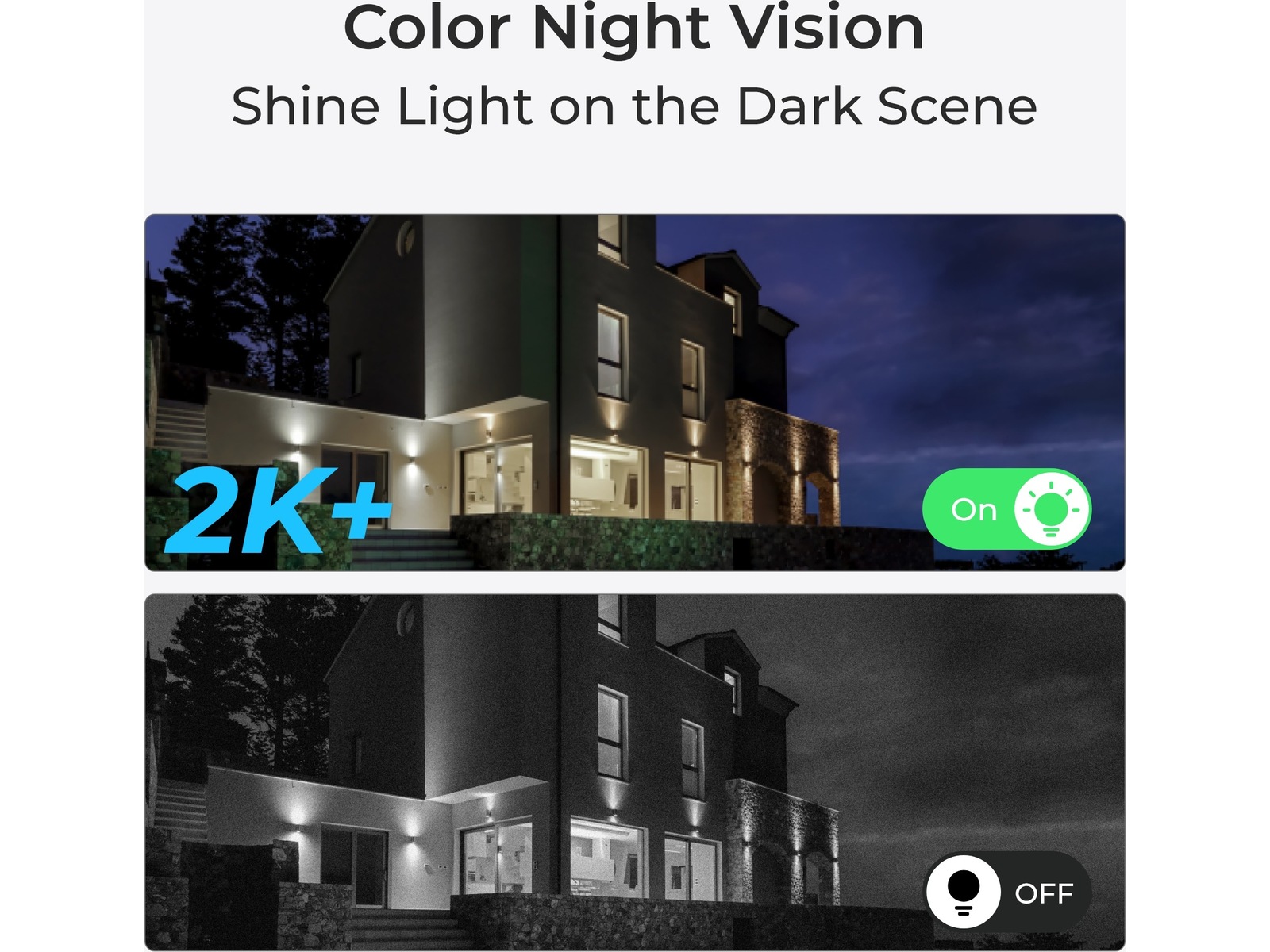 Color Night Vision, Vehicle Detection, Bevegelsespåvisning, Person Detection, Innebygd lyskaster